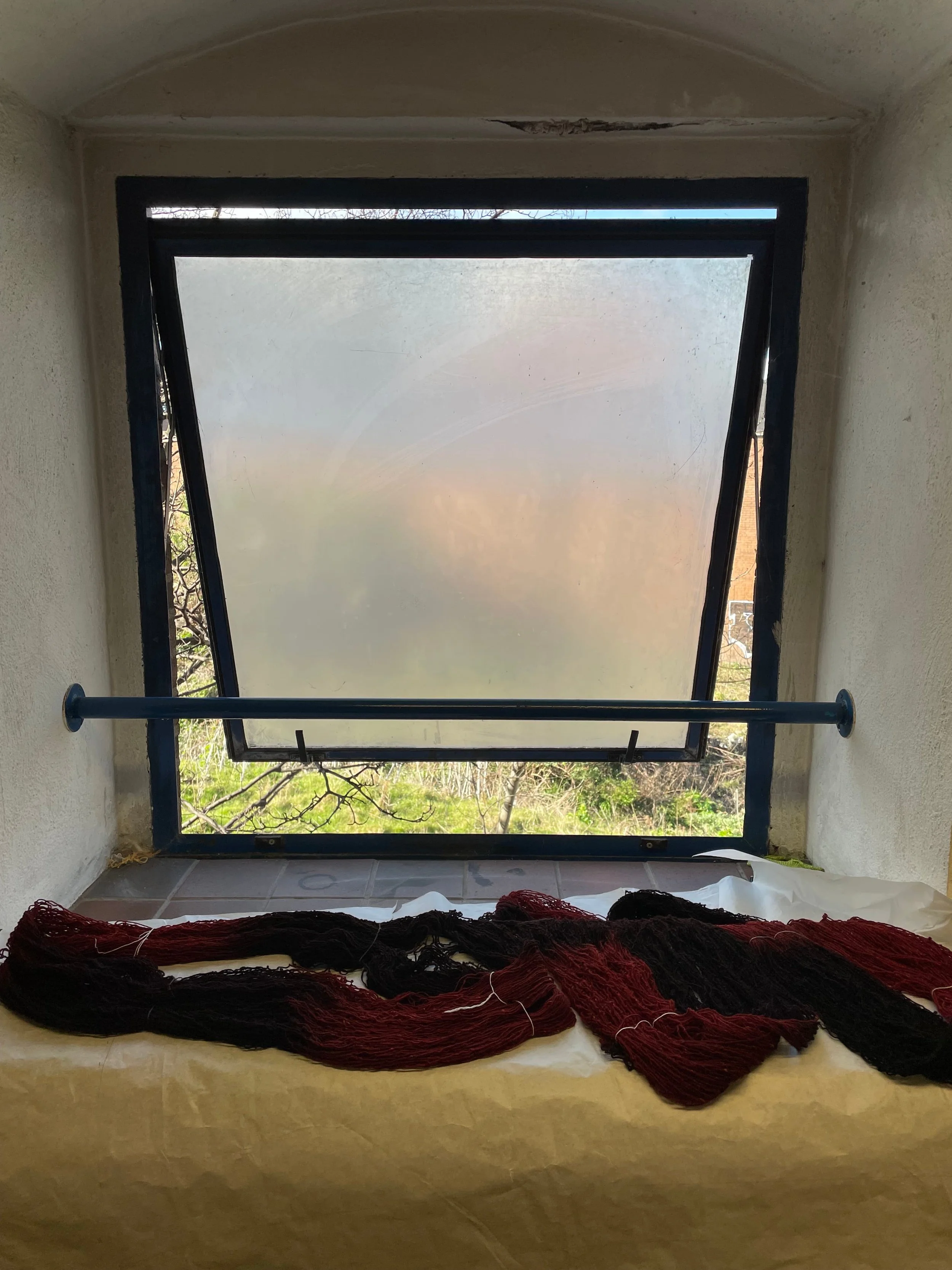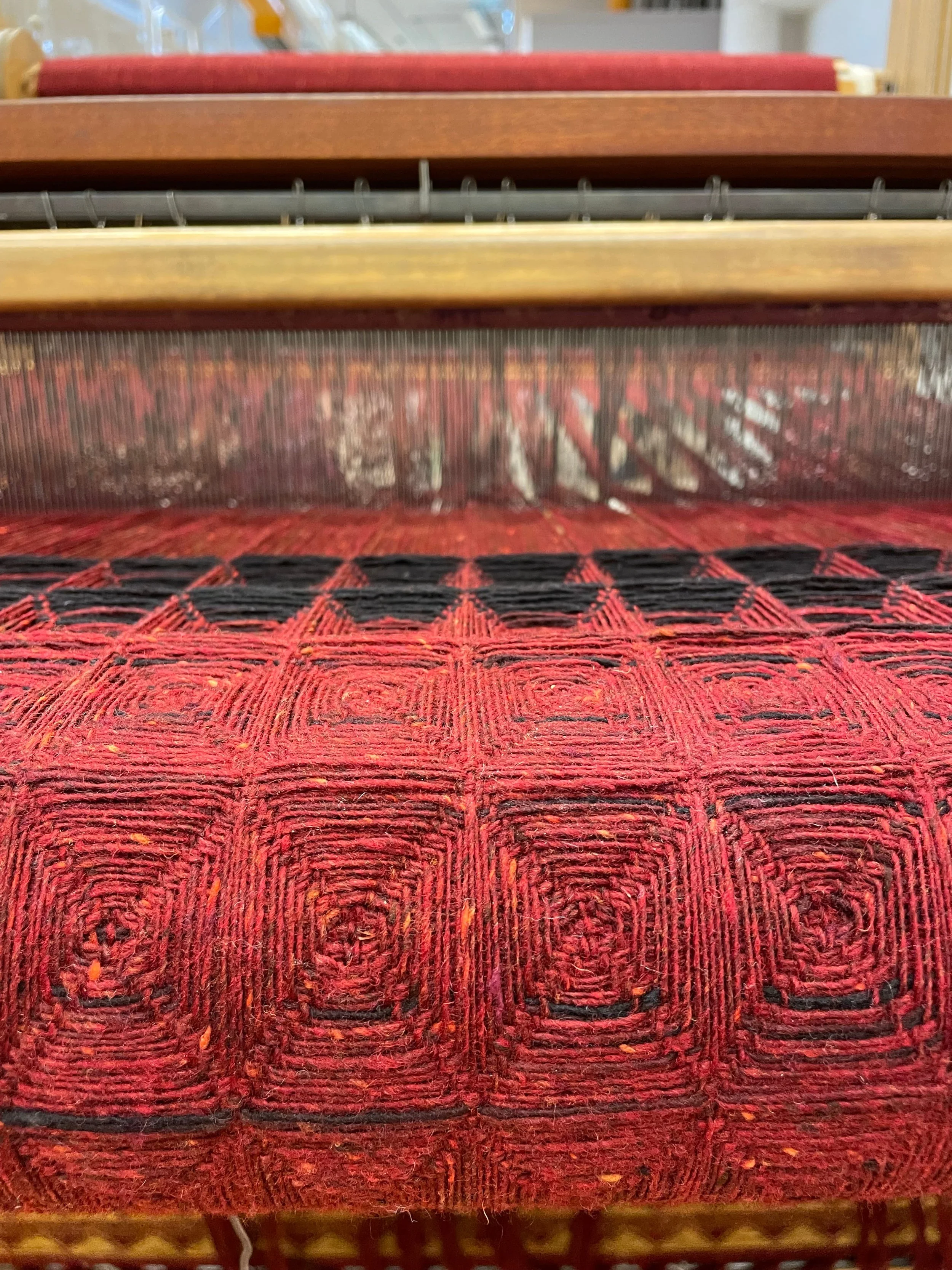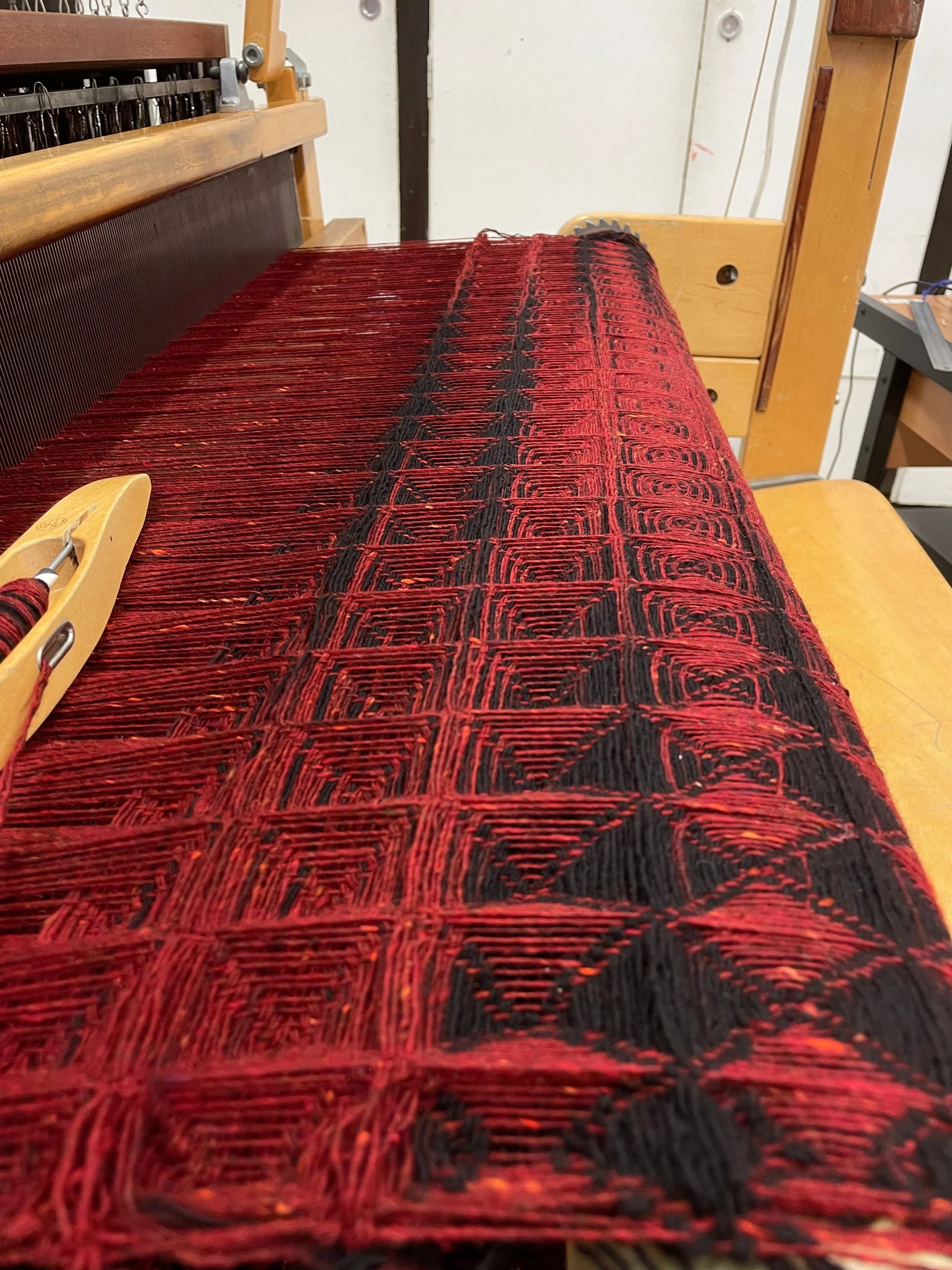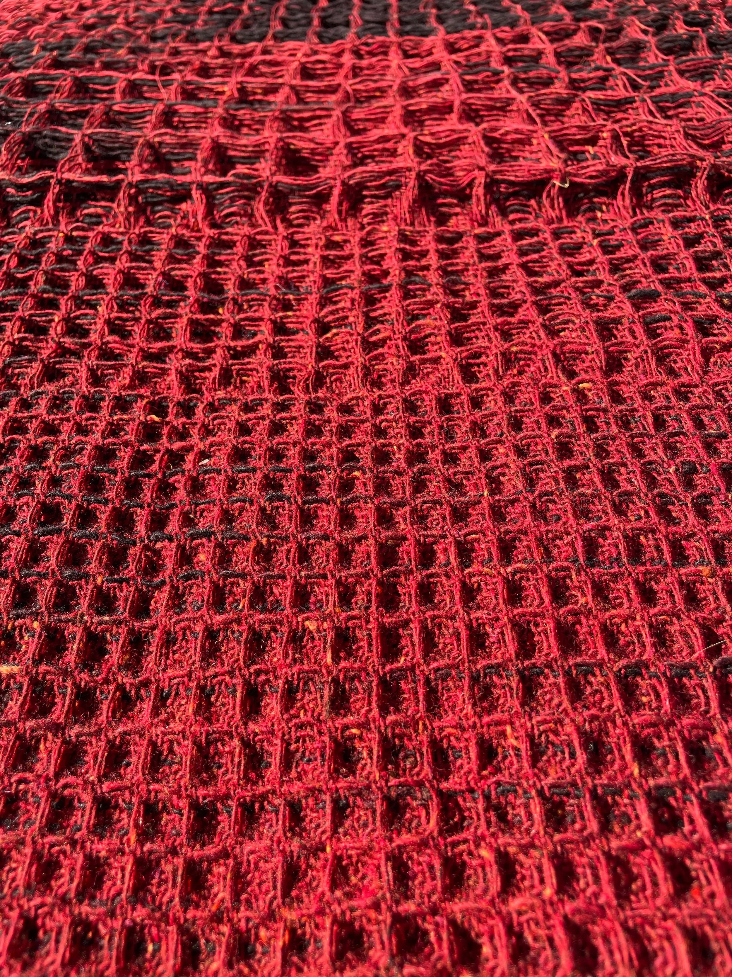 Technique(s): 24-shaft honeycomb weave, space-dying